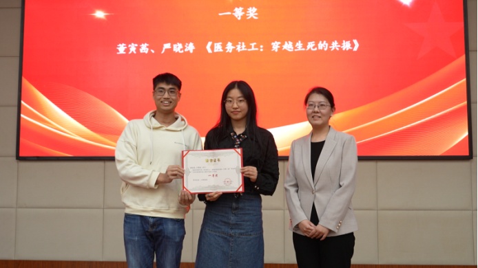 在獲獎(jiǎng)代表發(fā)言環(huán)節(jié),文字作品一等獎(jiǎng)作者代表、清華大學(xué)社會(huì)學(xué)專業(yè)董寅茜及短視頻作品一等獎(jiǎng)作者代表、中國(guó)勞動(dòng)關(guān)系學(xué)院新聞與傳播專業(yè)研究生馬凱分享了自己的創(chuàng)作心得與獲獎(jiǎng)感受。董寅茜表示,希望借由創(chuàng)作“看到一些處于困境的人們的生活情況,也向大家傳遞一種溫暖和美好的信念”。馬凱則以“在時(shí)代洪流中小人物如何找到自我”為命題,回顧了對(duì)人民調(diào)解員的拍攝經(jīng)過,并深刻感悟到“真正值得歌頌的,并非標(biāo)簽,而是標(biāo)簽背后人的勇氣與溫度”。