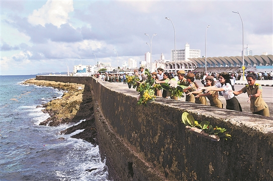 當天,古巴各界群眾聚集在首都哈瓦那海濱大道,向大海拋撒鮮花,以此緬懷革命英雄卡米洛·西恩富戈斯遇難66周年。西恩富戈斯是古巴革命時期主要領(lǐng)導(dǎo)人之一,曾率領(lǐng)起義軍擊敗了巴蒂斯塔獨裁政府的主力,因而與菲德爾·卡斯特羅、切·格瓦拉一道,被譽為“古巴革命三大司令”。1959年10月28日,時任古巴軍隊總參謀長的西恩富戈斯所乘專機在海上遇難,終年27歲。
